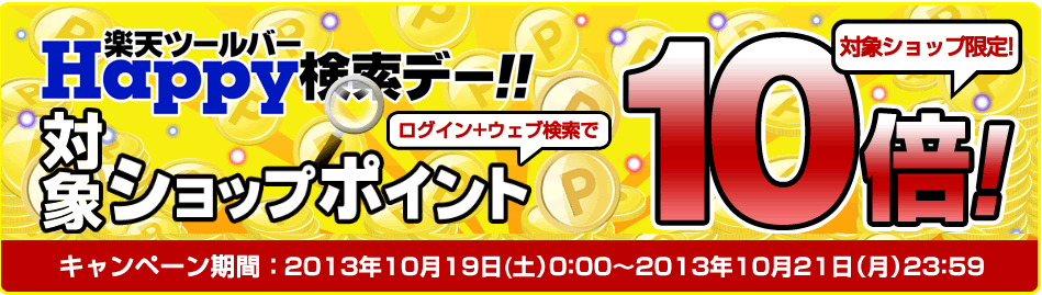 楽天市場で 「Happy検索デー 対象ショップポイント10倍 (131020)」 が開催中です。