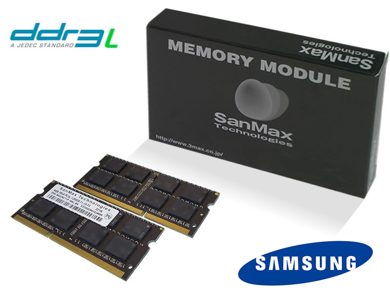 DDR3L-1600(PC3L-12800)に対応した、8GB×2枚組のノート用モデルです。