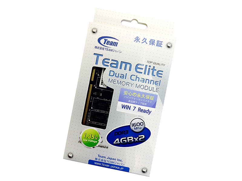 DDR3L-1600(PC3L-12800)に対応した、4GB×2枚組の1.35Vモデルです。