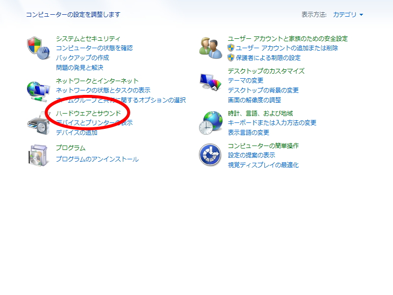 ハードウェアとサウンドをクリック。
