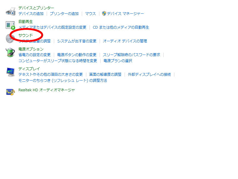 サウンドをクリック。