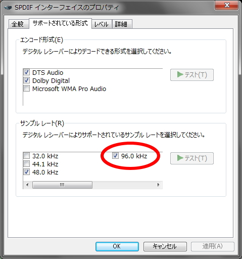 HUD-mx1は96.0KHzまで対応しているため、96.0KHzをクリック。