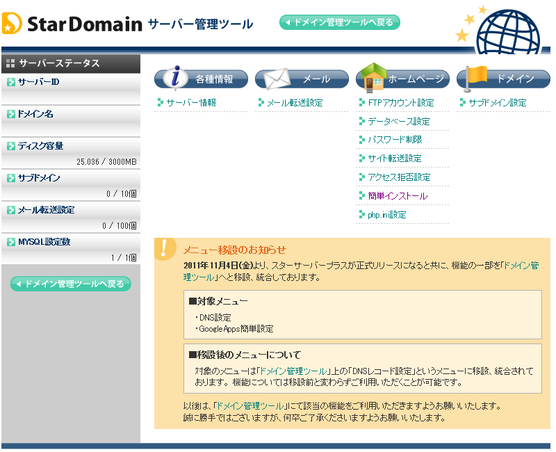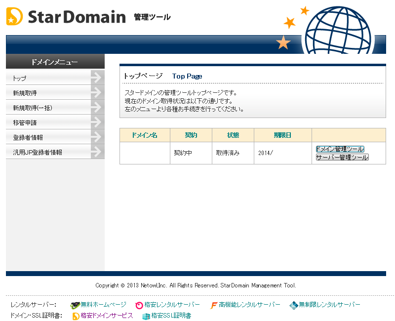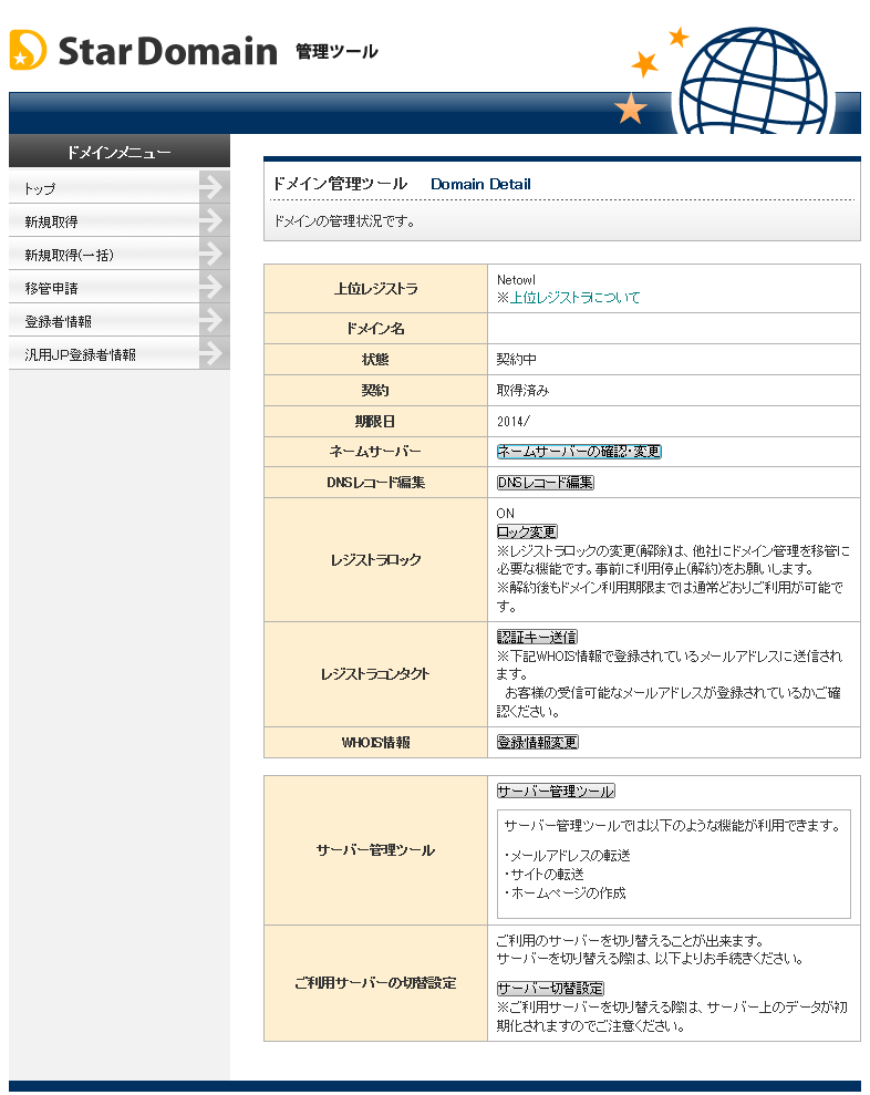 サーバー機能が付属するレジストラ 「スタードメイン」