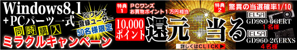 PCワンズで 「一式注文 スーパーミラクルキャンペーン」 が開催中です。
