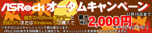 「ASRock オータムキャンペーン」 が開催中です。