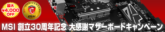 アークで 「MSI 創立30周年記念 大感謝マザーボードキャンペーン」 が開催中です。