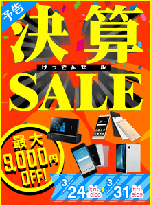 NTTコムストアで 「最大9,000円OFF 決算セール」 が本日3月24日(金)10時開始です。