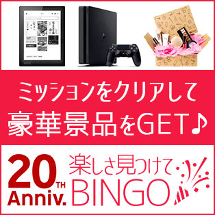 楽天市場で 「楽天市場20周年 楽しさ見つけてBINGO」 が開催中です。