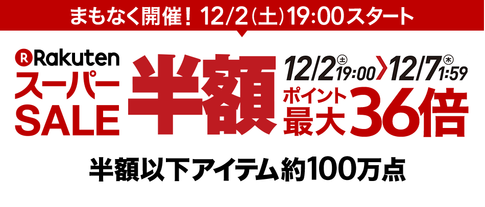 楽天市場で 「ポイント最大36倍 楽天スーパーSALE」 が本日12月2日19時より開始です。
