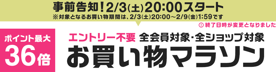 楽天市場で 【ポイント最大36倍 お買い物マラソン】 が2月3日20時スタートです。