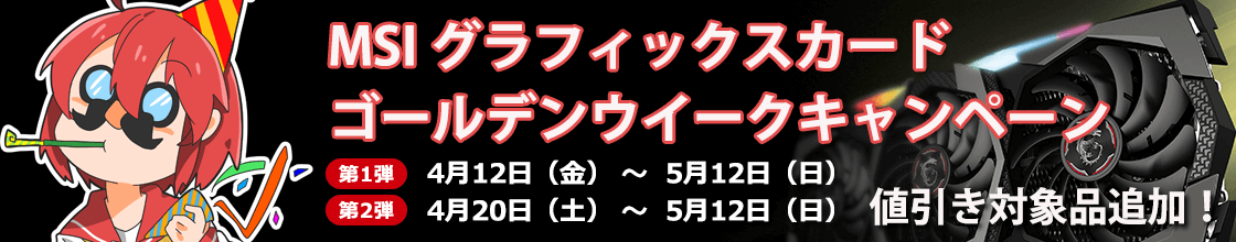 【MSI グラフィックスカード ゴールデンウイークキャンペーン】 が開催中です。