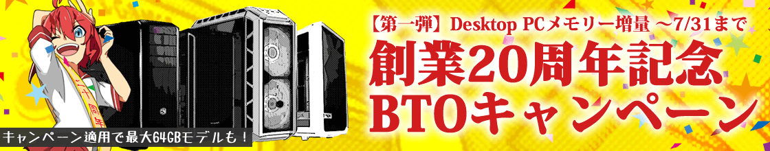 【おかげさまで20周年!BTOキャンペーン】 が開催中です。