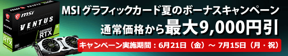 アークで 【MSI グラフィックスカード 夏のボーナスキャンペーン】 が開催中です。