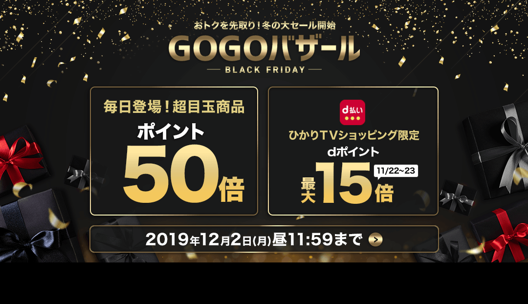 ひかりTVショッピングで 【PT50倍&最大5,000PT! BLACK FRIDAY GOGOバザール】 が開催中です。