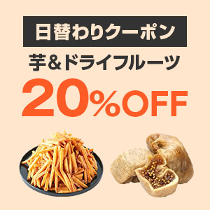 Amazon.co.jpで 【芋&ドライフルーツカテゴリで使える20%OFFクーポン】 が開催中です。
