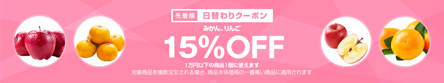 Yahoo!ショッピングで 【みかん、りんごカテゴリで使える15%OFFクーポン】 が開催中です。