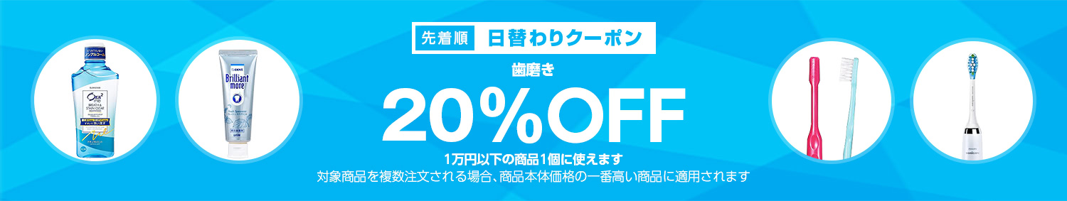 Amazon.co.jpで 【歯磨きカテゴリで使える20%OFFクーポン】 が開催中です。