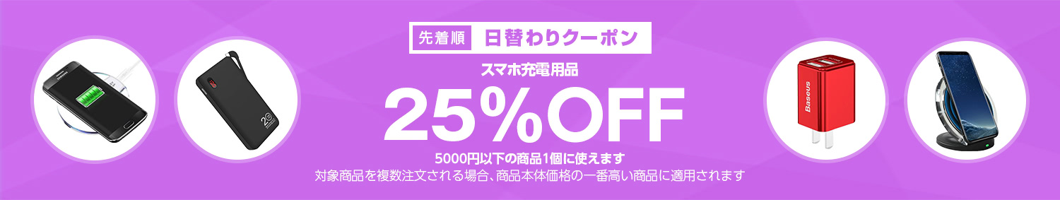 Yahoo!ショッピングで 【スマホ充電用品カテゴリで使える25%OFFクーポン】 が開催中です。