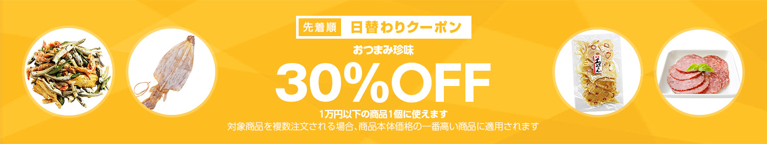 Yahoo!ショッピングで 【おつまみ珍味カテゴリで使える30%OFFクーポン】 が開催中です。