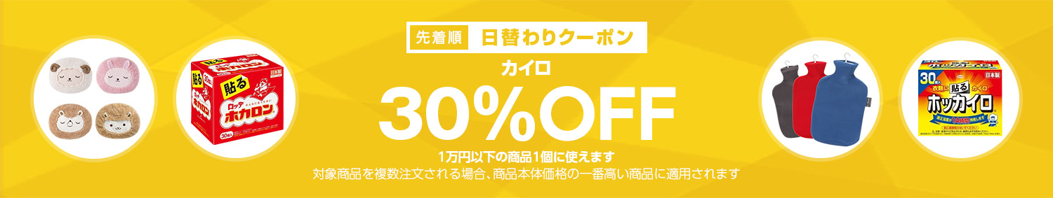 Yahoo!ショッピングで 【カイロカテゴリで使える30%OFFクーポン】 が開催中です。