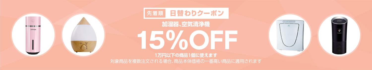 Yahoo!ショッピングで 【加湿器、空気清浄機カテゴリで使える15%OFFクーポン】 が開催中です。