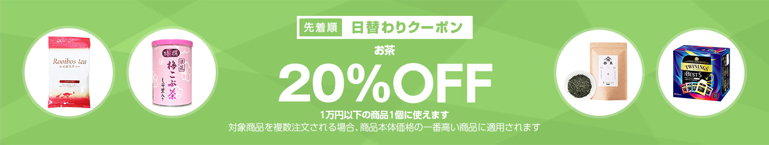 Yahoo!ショッピングで 【お茶カテゴリで使える20%OFFクーポン】 が開催中です。