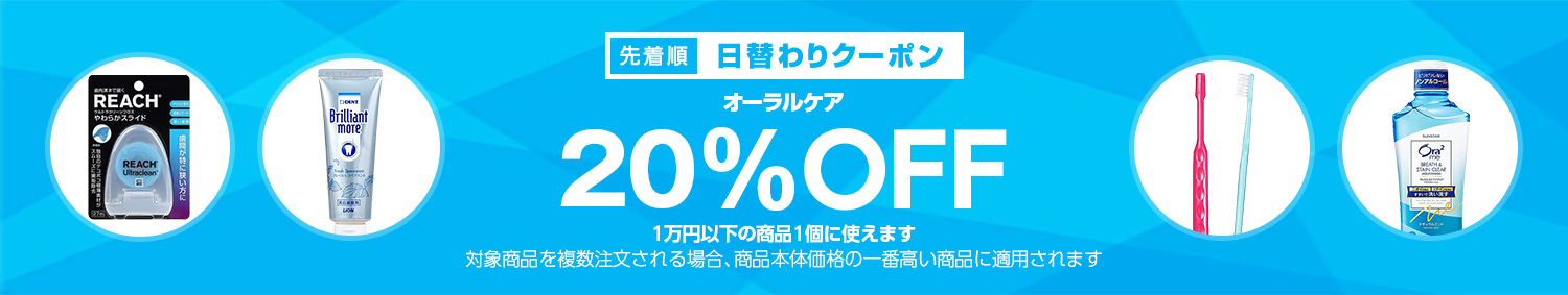 Yahoo!ショッピングで 【オーラルケアカテゴリで使える20%OFFクーポン】 が開催中です。