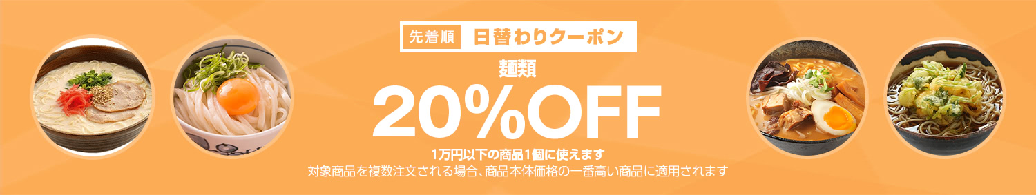 Yahoo!ショッピングで 【麺類カテゴリで使える20%OFFクーポン】 が開催中です。