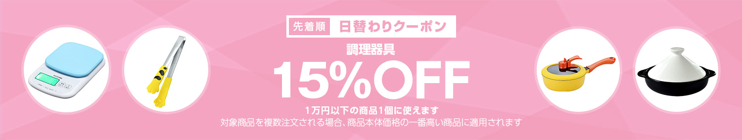 Yahoo!ショッピングで 【調理器具カテゴリで使える15%OFFクーポン】 が開催中です。