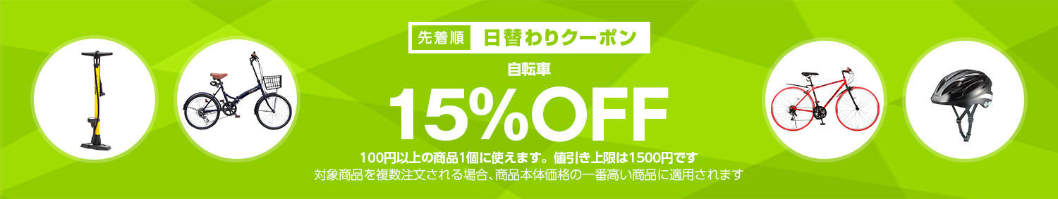 Yahoo!ショッピングで 【自転車カテゴリで使える15%OFFクーポン】 が開催中です。