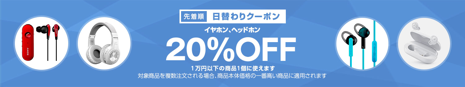 Yahoo!ショッピングで 【イヤホン、ヘッドホンカテゴリで使える20%OFFクーポン】 が開催中です。