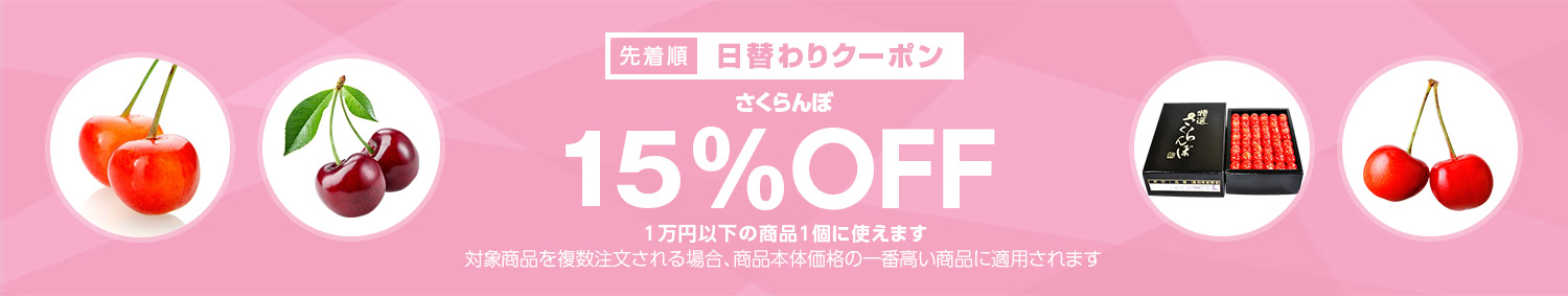 Yahoo!ショッピングで 【さくらんぼカテゴリで使える15%OFFクーポン】 が開催中です。