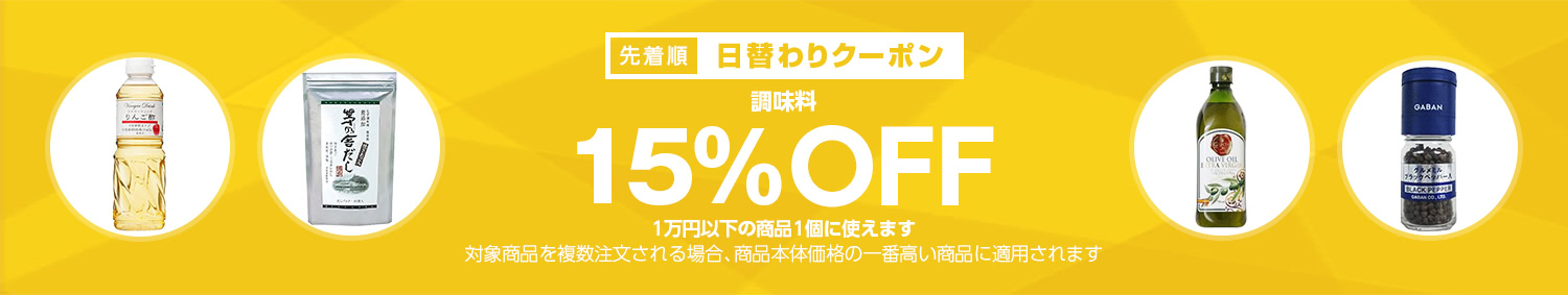 Yahoo!ショッピングで 【調味料カテゴリで使える15%OFFクーポン】 が開催中です。