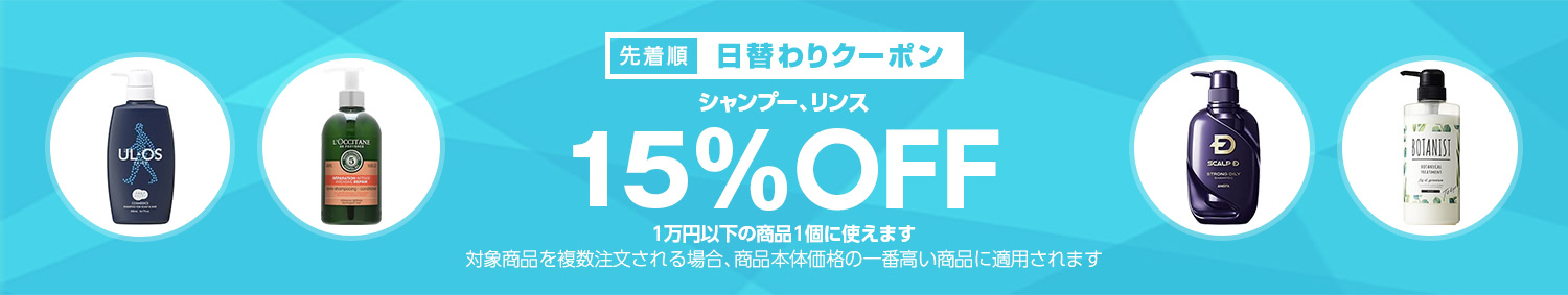 Yahoo!ショッピングで 【シャンプー、リンスカテゴリで使える15%OFFクーポン】 が開催中です。