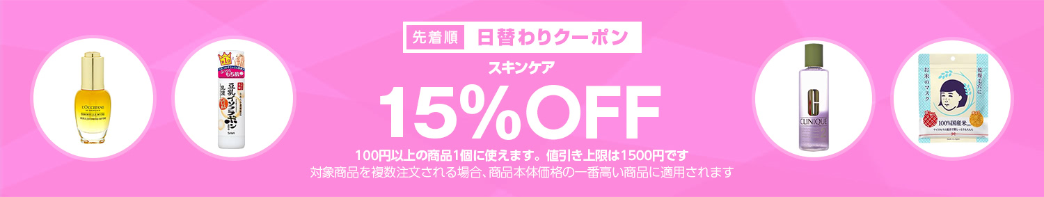 Yahoo!ショッピングで 【スキンケアカテゴリで使える15%OFFクーポン】 が開催中です。