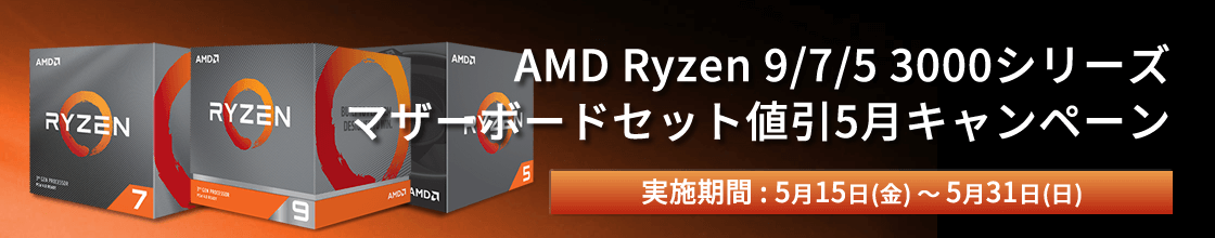 【AMD Ryzen CPUとマザーボードセット値引 5月キャンペーン】 が開催中です。