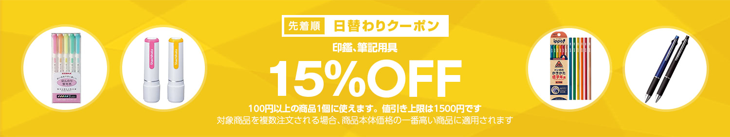 Yahoo!ショッピングで 【印鑑、筆記用具カテゴリで使える15%OFFクーポン】 が開催中です。