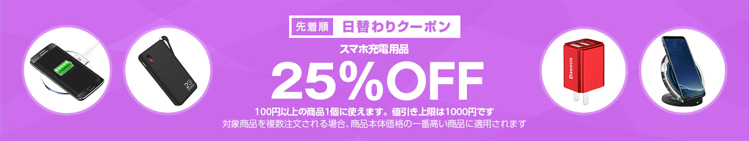 Yahoo!ショッピングで 【スマホ充電用品カテゴリで使える25%OFFクーポン】 が開催中です。