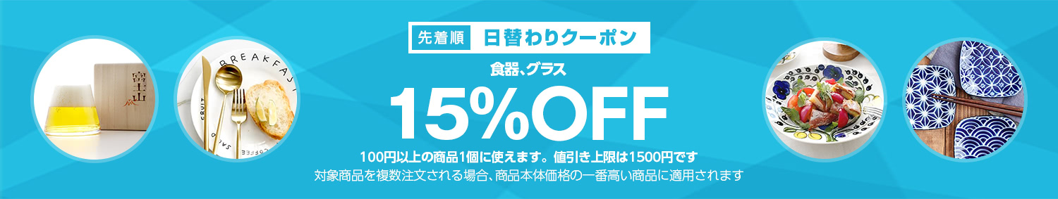 Yahoo!ショッピングで 【食器、グラスカテゴリで使える15%OFFクーポン】 が開催中です。
