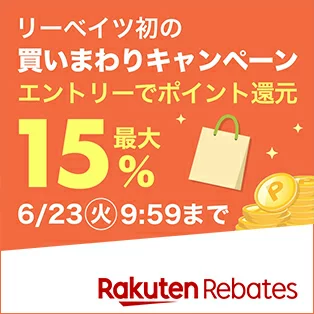 Rebatesで 【最大15%還元 リーベイツ初の買いまわりキャンペーン】 が開催中です。