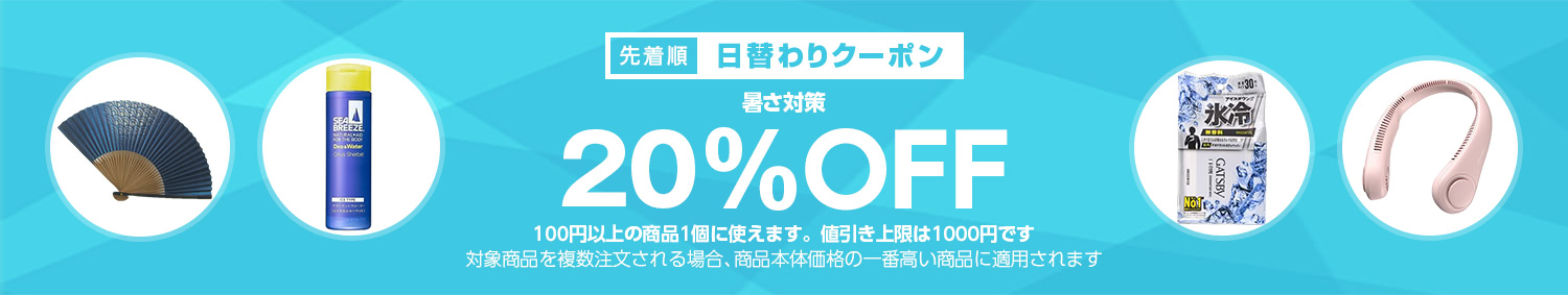 Amazon.co.jpで 【暑さ対策カテゴリで使える20%OFFクーポン】 が開催中です。