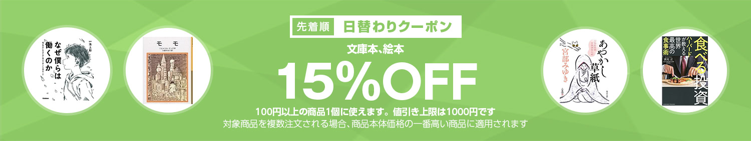 Yahoo!ショッピングで 【文庫本、絵本カテゴリで使える15%OFFクーポン】 が開催中です。