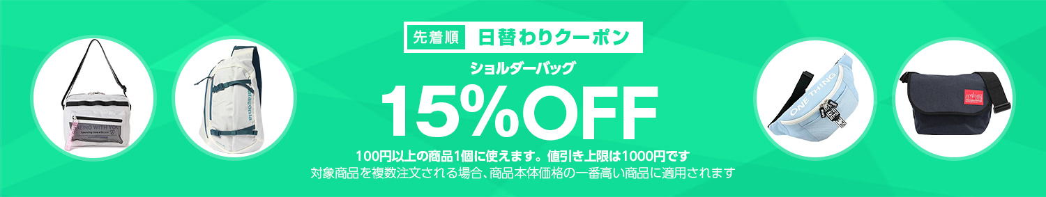 Yahoo!ショッピングで 【ショルダーバッグカテゴリで使える15%OFFクーポン】 が開催中です。