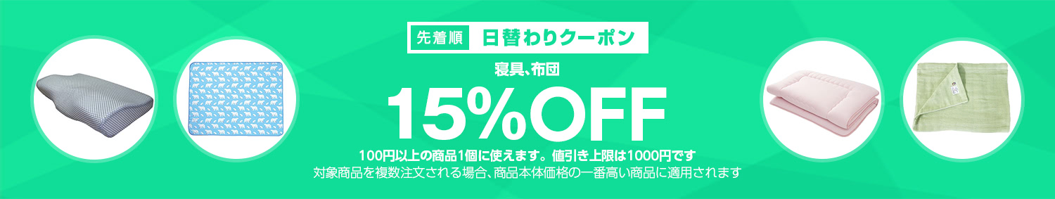 Yahoo!ショッピングで 【寝具、布団カテゴリで使える15%OFFクーポン】 が開催中です。