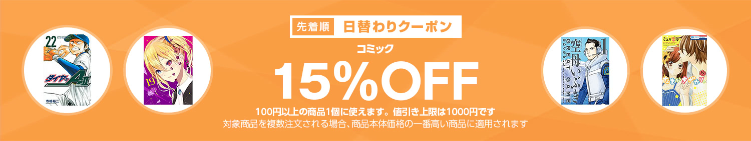 Yahoo!ショッピングで 【コミックカテゴリで使える15%OFFクーポン】 が開催中です。