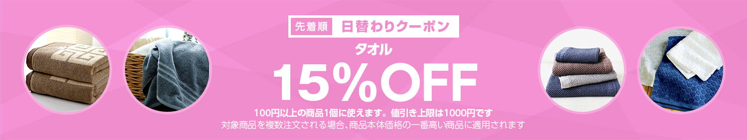 Yahoo!ショッピングで 【タオルカテゴリで使える15%OFFクーポン】 が開催中です。