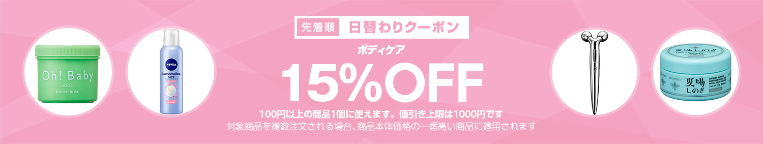 Yahoo!ショッピングで 【ボディケアカテゴリで使える15%OFFクーポン】 が開催中です。