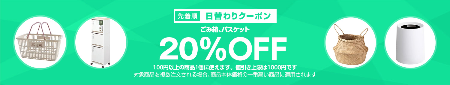 Yahoo!ショッピングで 【ごみ箱、バスケットカテゴリで使える20%OFFクーポン】 が開催中です。