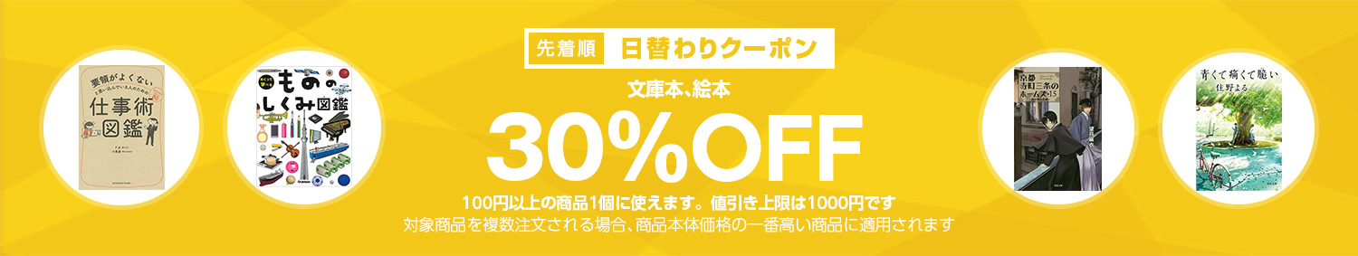 Yahoo!ショッピングで 【文庫本、絵本カテゴリで使える30%OFFクーポン】 が開催中です。