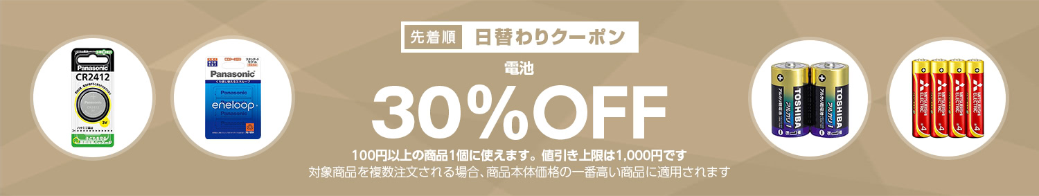 Yahoo!ショッピングで 【電池カテゴリで使える30%OFFクーポン】 が開催中です。